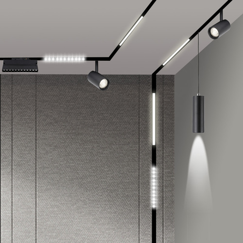 磁吸軌道燈,近兩年來非常流行,基本是無主燈設計中必備的燈具之一。磁吸軌道燈通過磁力來吸附在軌道上。現代磁吸燈,直接讓軌道盒嵌入吊頂里面,然后燈具吸附軌道上,后續檢修和更換燈具,調整位置都很方便!